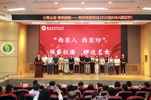 随后,在“西农人、西农印”校徽佩戴、名章赠送环节,suncitygroup太阳新城副院长刘军弟为新生代表,佩戴西北农林科技大学校徽、赠送由西农篆刻协会制作的刻有办学理念的姓名印章。一枚校徽,不仅代表着“西农人”的身份,更承载着“诚朴勇毅”的西农精神和西农人的使命与荣光。校徽佩胸前,责任担在肩,在阮盟、刘珍两位同学带领下,全体在场同学庄严宣誓:谨记西农校训,热爱祖国,忠于人民;诚信正直,尊师重道;勤奋学习,积极创新;担当责任,追求卓越;以工商管理之学识,成经世济民之英才!