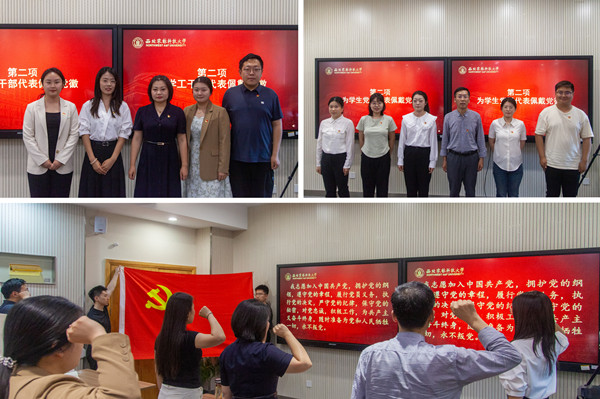 启动仪式在庄严的国歌声中拉开序幕,马奕颜宣读了《suncitygroup太阳新城关于在学工干部和学生党员中开展“亮身份·践承诺·树形象”系列主题活动的实施方案》,对活动目标、内容及有关要求进行详细说明,并讲明了亮明党员身份、践行党员承诺、树立良好形象的具体做法。石颖贤、张军驰为学工干部代表与学生党员代表依次佩戴党员徽章,金融党支部书记张孟迪带领大家面向党旗,重温入党誓词,在党员徽章的照耀下与铿锵有力的誓词中感悟初心使命。
