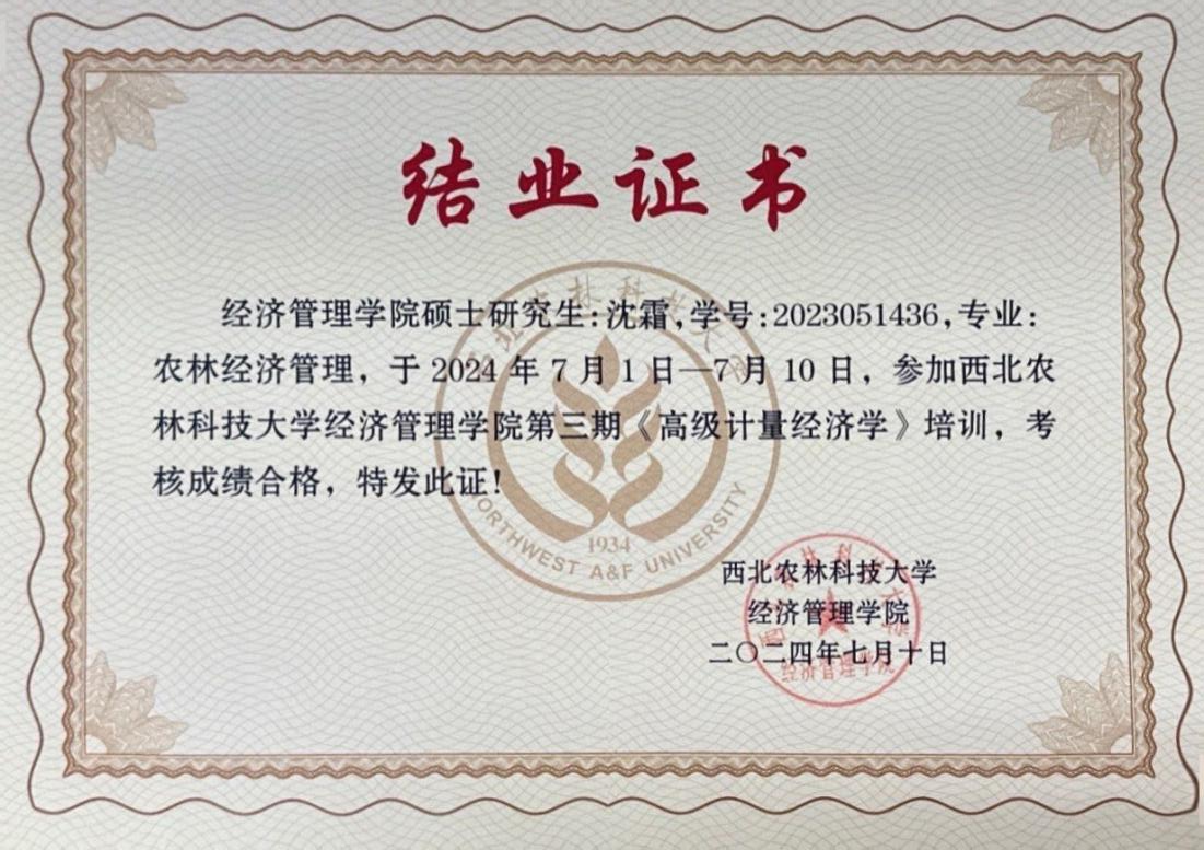 7月1日-10日,为夯实研究生高级计量经济学理论基础,提升应用计量经济学方法从事经济研究的能力,suncitygroup太阳新城邀请郑志浩讲座教授、美国SAS研究所首席计量经济学家孙传忠博士、中国农业大学suncitygroup太阳新城陈祁晖教授以专题形式讲授高级计量经济学知识,开展了一场为期10天32学时的高级计量经济学培训。团队博士研究生王运昌,硕士研究生沈霜、田思宇、杨婕妤全程参加了本次培训。