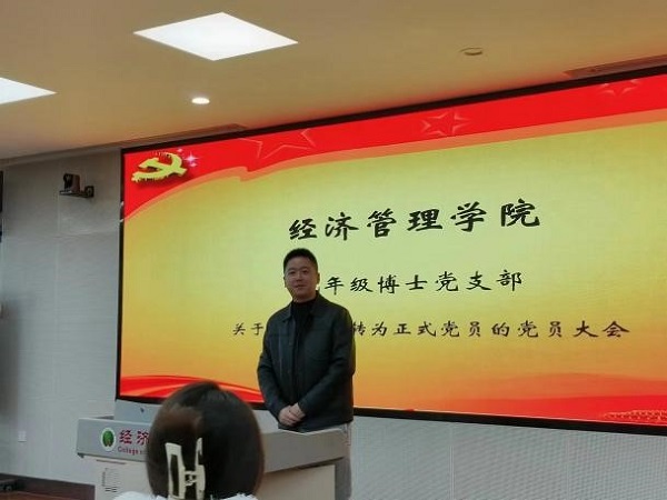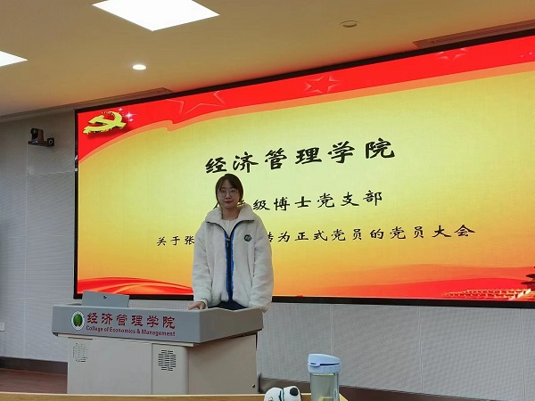 会议讨论了关于张雨田、徐苗苗和符越同志转为中共正式党员的相关事宜。张雨田、徐苗苗和符越同志分别从思想政治、科研学习及社会服务等方面依次汇报了自己在预备期内的表现,并向大会提出转正申请;之后入党介绍人分别介绍预备党员有关情况,并对其能否转正表明意见,与会党员就预备党员能否转正进行充分讨论,并推选出监计票人,采取无记名投票方式进行表决。按照赞成人数超过应到会具有表决权正式党员的半数才能通过预备党员转正的规定,大会同意张雨田、徐苗苗和符越同志按期转正为中共正式党员。