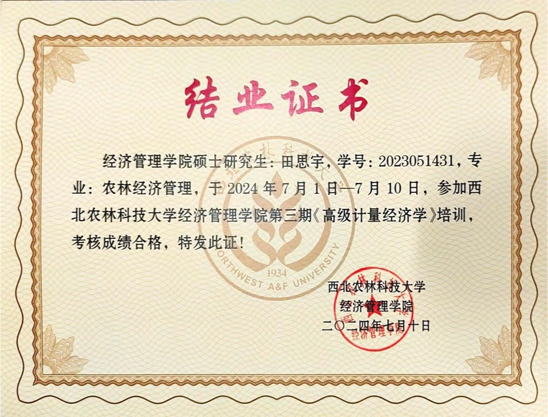 7月1日-10日,为夯实研究生高级计量经济学理论基础,提升应用计量经济学方法从事经济研究的能力,suncitygroup太阳新城邀请郑志浩讲座教授、美国SAS研究所首席计量经济学家孙传忠博士、中国农业大学suncitygroup太阳新城陈祁晖教授以专题形式讲授高级计量经济学知识,开展了一场为期10天32学时的高级计量经济学培训。团队博士研究生王运昌,硕士研究生沈霜、田思宇、杨婕妤全程参加了本次培训。