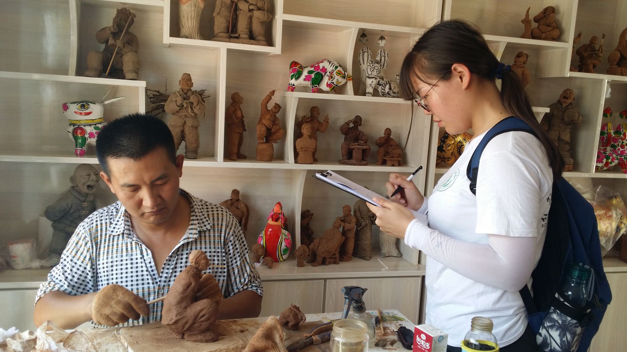 当日下午,调研团队决定去距离城区不远的注明泥塑村六营村。2002年,邮局发行的邮票中用了该村的3座泥塑作品,从此,该地便成了凤翔文化的一种代表。下午顶着烈日,调研小组一分为二,分别对村子的前半段和后半段进行了调研,通过对整条街的走访分析。同学们不仅获得了很多数据,同时也学到了很多当地的风俗文化。