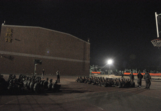 夜色渐晚,同学们在严格的训练成果检查之后都疲惫的走向休息区,而眼前这支小队伍仍然在篮球场反复的“耕耘”。队友热烈而欢快的拉歌声似乎都没有影响到他们专注的训练。教官讲道:“他们的训练姿势有些细节仍需改进,为了学院最后的荣誉,一直不抛弃不放弃,希望能通过努力将动作精细到位。”相信每一个人都值得拥有能为自己当初的努力与坚持而感动的回忆,那些汗水浸泡过的岁月一定独特而难忘。