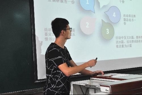 答辩会开始,参加答辩的队伍依序上台汇报,汇报内容主要包括团队成员介绍、活动背景、前期准备、活动经历、成果展示、新闻报道等方面。由团队汇报人介绍暑期社会实践活动的主要内容,各队全面回顾实践活动的精彩过程,所思所获和实践成果,促进队伍之间的交流学习。团队PPT展示结束后,评委对其进行细致的点评,并提出中肯的修改建议。各参赛队伍认真听取评委老师的建议,表示会继续改进。