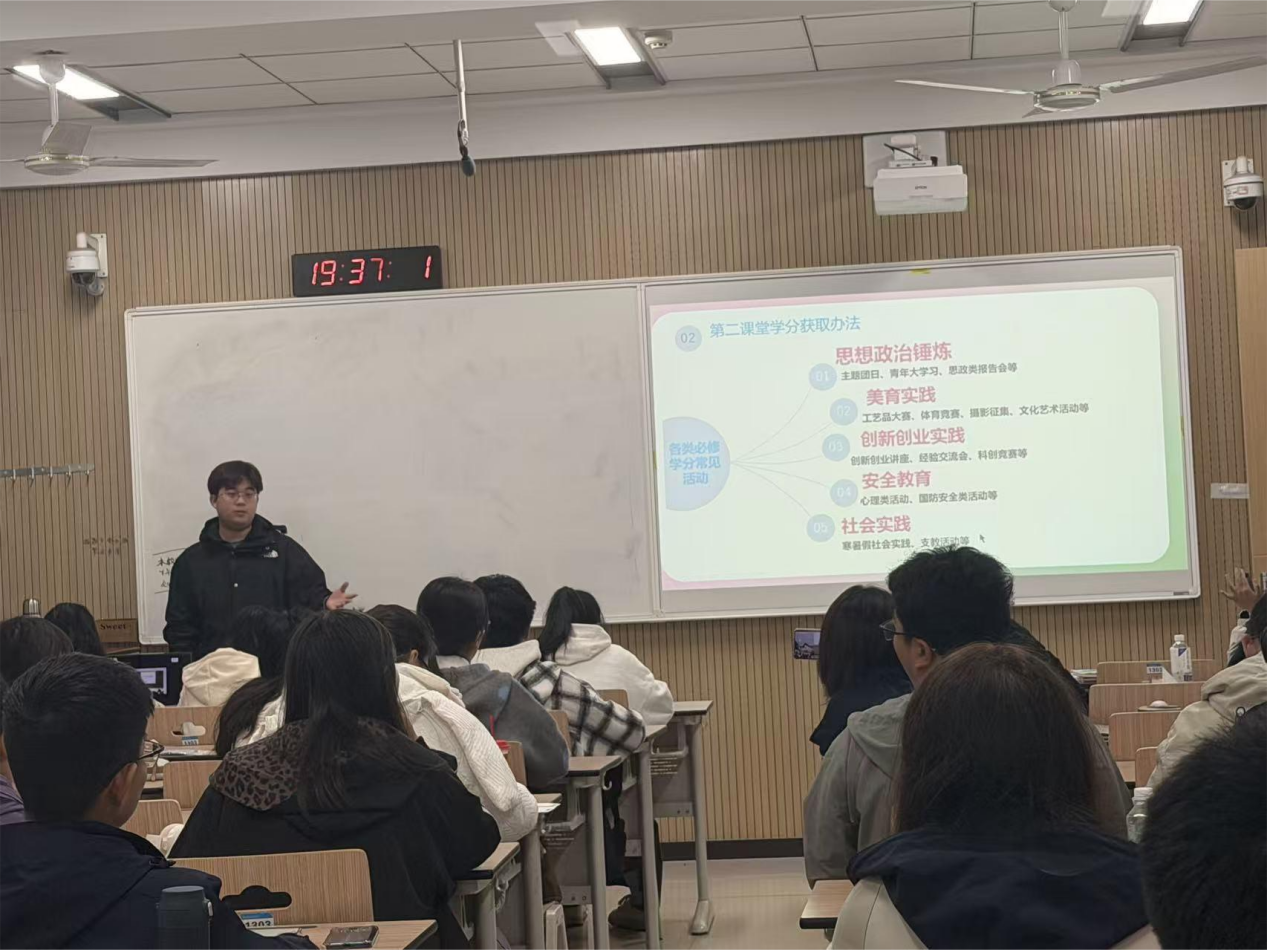 为助力2025级新生深入知晓第二课堂成绩单制度,妥善解决他们在前期宣讲中提出的疑问,suncitygroup太阳新城团委素质拓展部于2025年11月1日晚,在南校区一号教学楼S1303教室举办“第二课堂成绩单制度答疑解惑宣讲会”。
