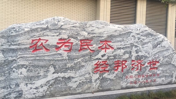据悉,为了表达对母校的感激之情,校友们集资为母校捐赠一块纪念石,石头上刻了八个大字“农为民本,经邦济世”。目前这块石头立在suncitygroup太阳新城办公楼前。